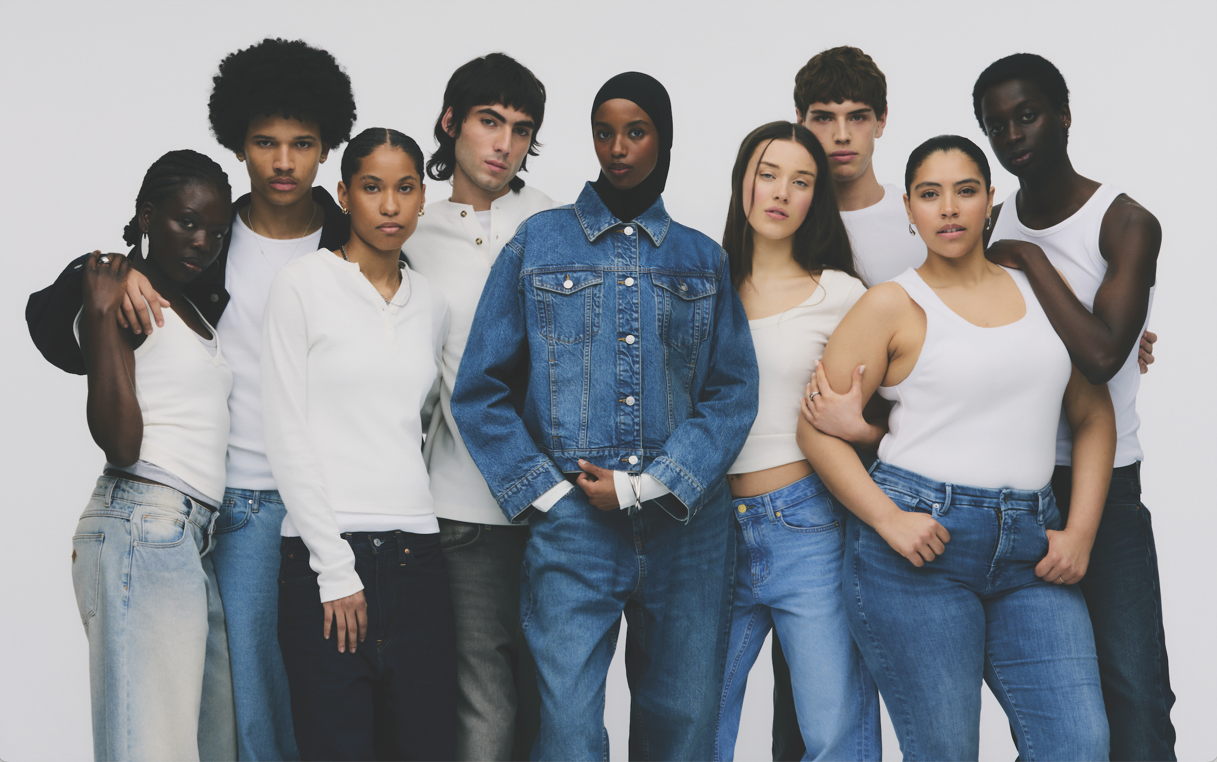 Our final campaign shoot was all about giving our new cast the space to show off this season’s hero shapes and signature washes. With a cast who brought their own individuality to the shoot, we shot on a clean, monochrome set that stripped everything back so the denim could really take the lead. You can see a sneak peek of some of the final images below.